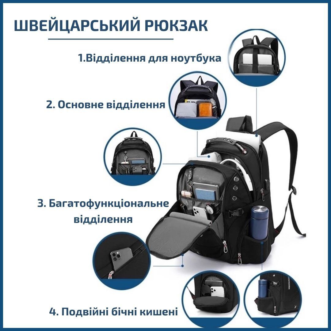 Стильний і якісний Швейцарський міський рюкзак з масою різних